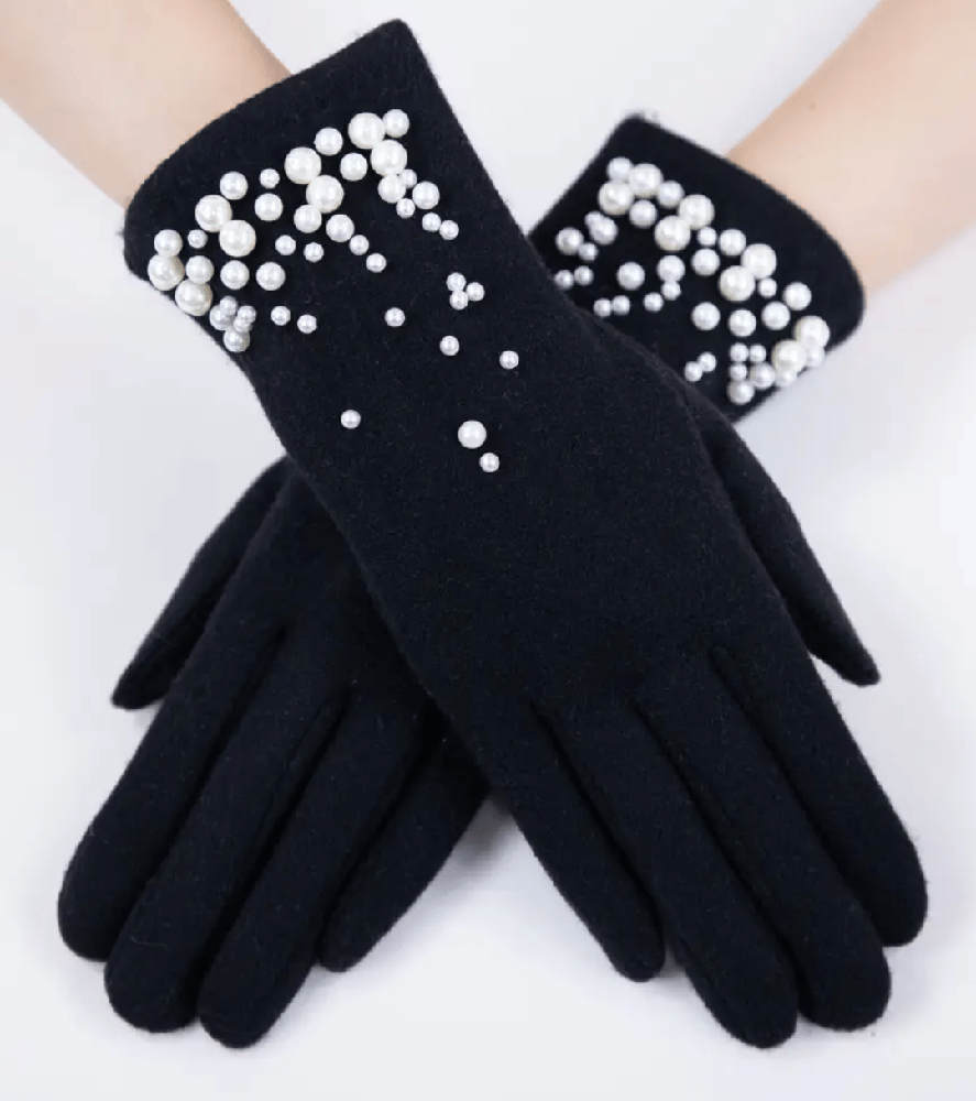 Classic faux pearl embellishments add a touch of class and glamour to these knit gloves 🧤 that will keep your hands warm. These gloves are also tech compatible on the thumb and fore finger that will allow you to stay easily connected.