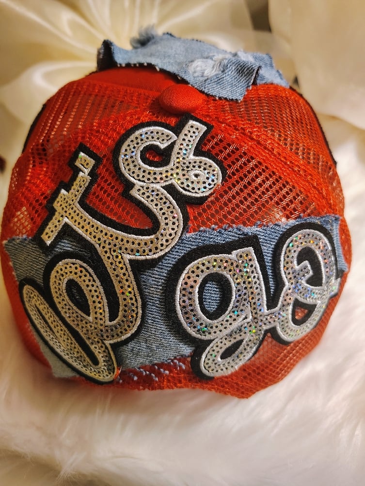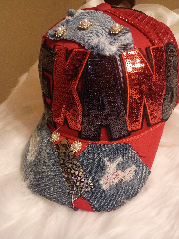 Denim, sequins and leather Texans Junk Hat. You want to be the only one at the tailgate party with this hat!