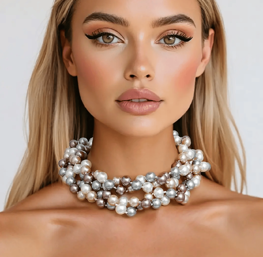 IVORY GREY GOLD GLASS PEARLS